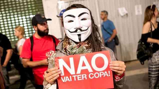 Manifestante mostra cartaz no qual afirma que não haveria Copa do Mundo