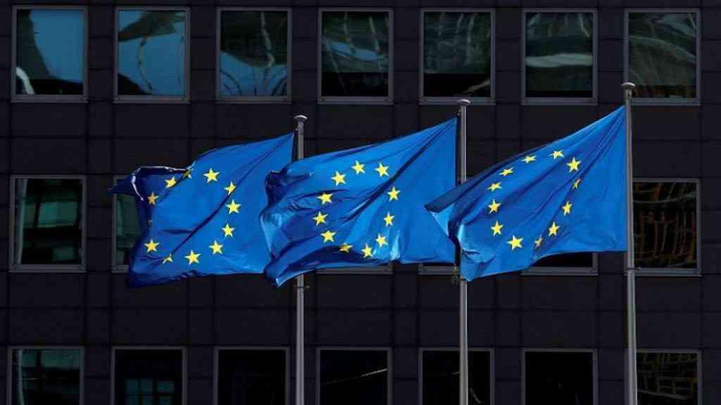 Bandeiras da União Europeia do lado de fora da sede da Comissão Europeia, em Bruxelas