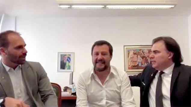 Eduardo Bolsonaro (E) e Salvini (C), encontro entre neofascistas