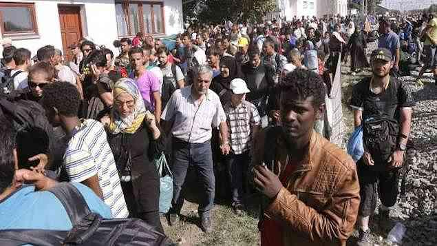 Imigrantes que cruzaram fronteira da Sérvia com a Croácia aguardam em campo para fazer registro