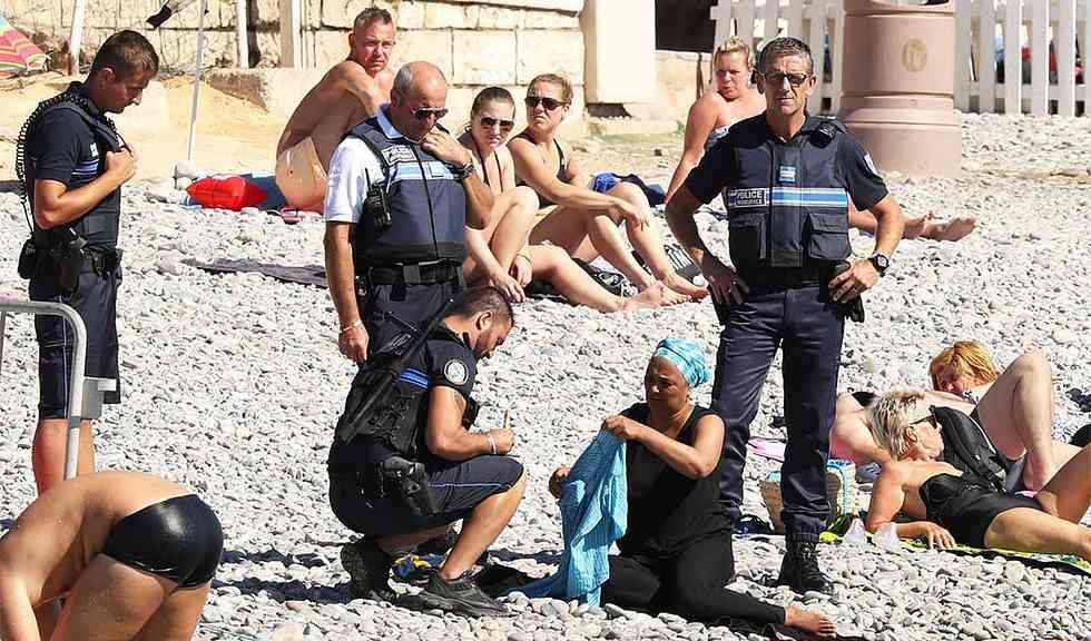 burquini.jpgNa praia de Promenade des Anglais, os franceses enterram a promessa de liberdade, igualdade e fraternidade ao despir uma senhora que usava o burquíni