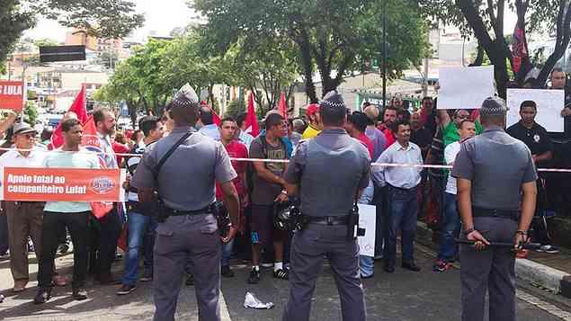 Manifestantes estão na porta do prédio do ex-presidente Luiz Inácio Lula da Silva, em São Bernardo do Campo