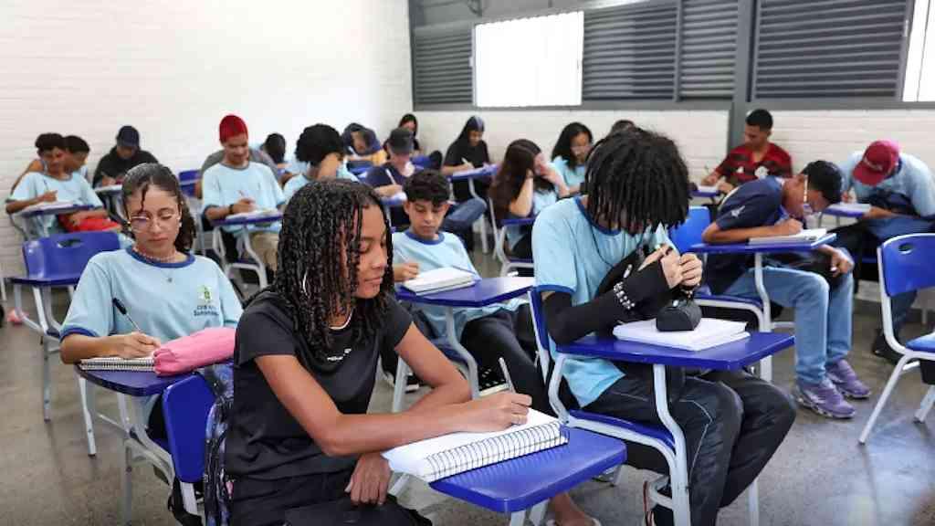 A cerca de 30 quilômetros dali, no Centro Educacional 619 de Samambaia Norte, no Distrito Federal, a estudante Aline Rocha Soares, de 17 anos, é uma das que esperam o depósito da poupança de R$ 1 mil na próxima quinta-feira, por ter sido aprovada no segundo ano em 2024.