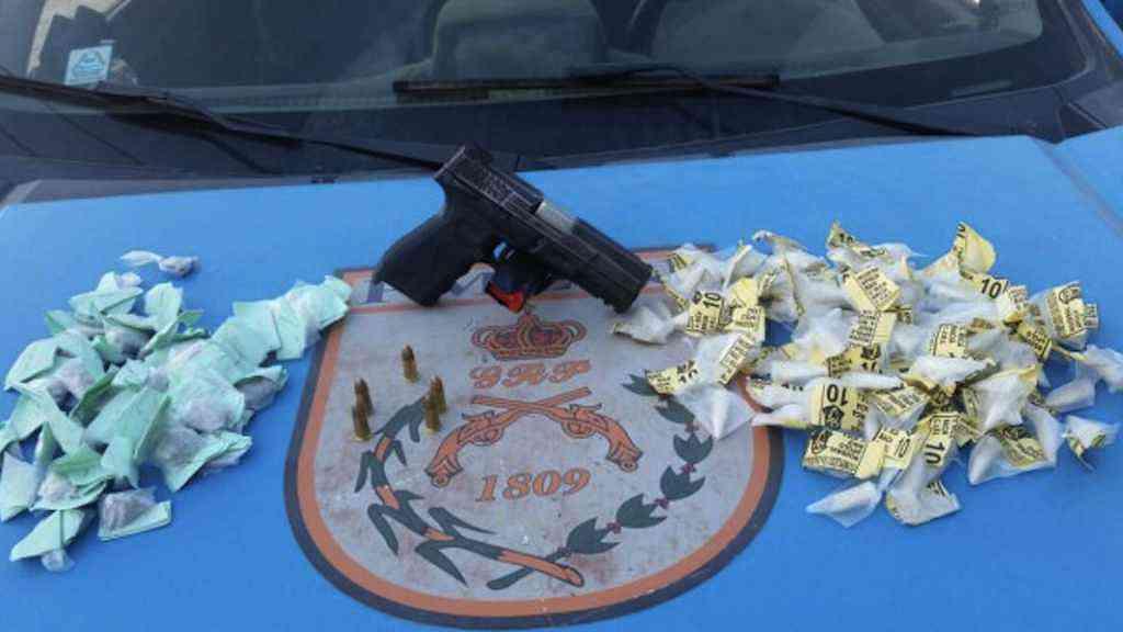 Após denúncia, policiais militares do 39° Batalhão, na tarde de domingo, detiveram dois suspeitos com uma pistola cal. 9mm, munições, 73 pinos de cocaína, 49 trouxinhas de maconha e uma quantia em dinheiro. O caso ocorreu no bairro de Jardim Brasil, em Belford Roxo e foi encaminhado à 54ª DP.