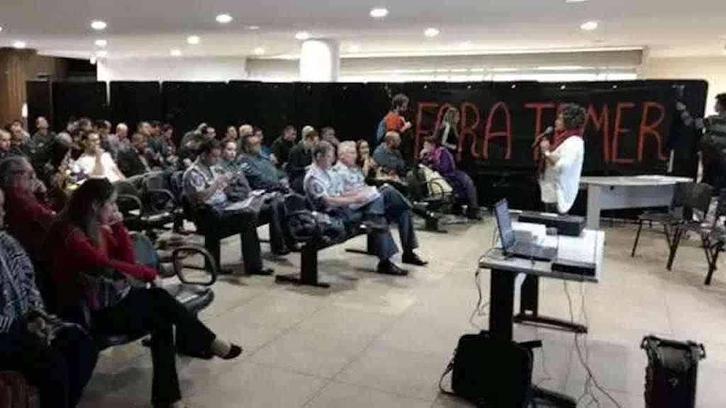 Professores, técnicos e estudantes que, ao tomarem conhecimento do ocorrido, pretendiam integrar a audiência; foram coagidos e impedidos de participar. Sob a justificativa de que não estavam presentes desde o início.