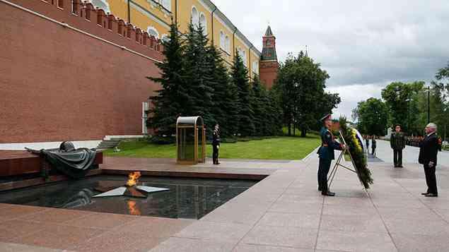 Para não passar totalmente em branco, Temer foi alvo de um pequeno protesto durante a homenagem ao soldado desconhecido. "Fora Temer!”, ouviu-se do público presente ao jardim Alexandrovski, junto à muralha do Kremlin, onde ocorreu o evento. Temer depositou uma coroa de flores com o cruzeiro do brasão brasileiro em frente à chama eterna do túmulo.