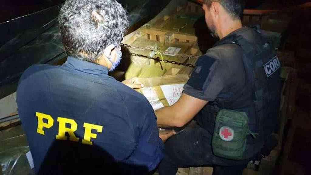 A apreensão aconteceu na altura da cidade de Piraí, no interior do Estado do Rio de Janeiro, e contou com apoio da Polícia Civil e de cães farejadores.
