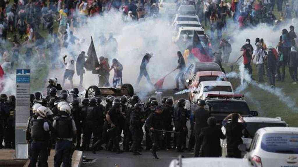 Durante o percurso, a polícia seguiu "empurrando" os manifestantes em direção à Rodoviária de Brasília. Em uma tentativa de dispersar o grupo. Bombas de gás lacrimogênio foram disparadas. Um carro que estava estacionado em frente à Catedral Metropolitana foi incendiado.