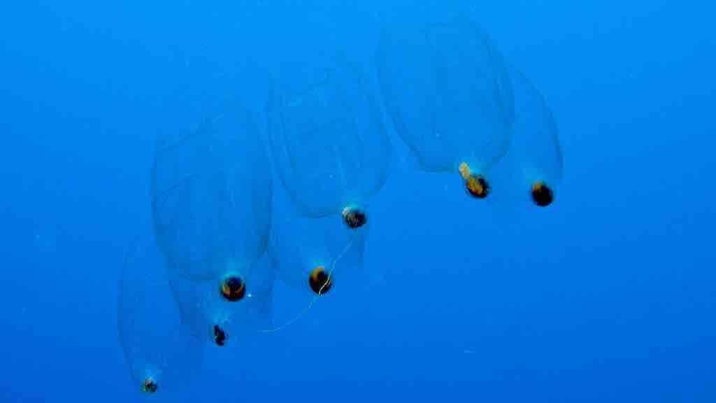 Comuns nos oceanos, esses organismos transparentes que parecem feitos de cristal geralmente se multiplicam em junho. Este ano, no entanto, a população aumentou em março devido às correntes mais quentes do que o habitual para esse período.
