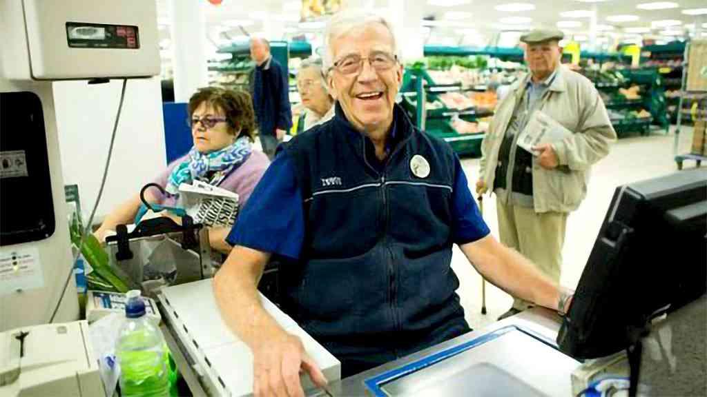 O britânico Les Rowe, aos 90 anos, mantém seu posto no caixa de uma loja de departamentos