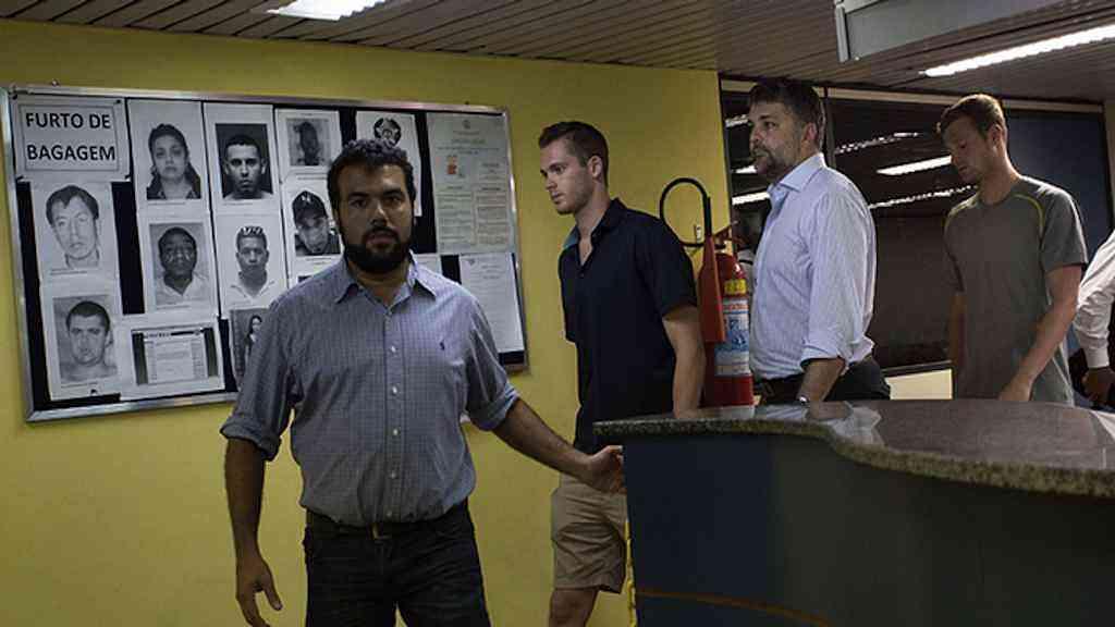 Os nadadores norte-americanos Gunnar Bentz e Jack Conger foram impedidos pela polícia de viajar aos Estados Unidos na quarta-feira. No Aeroporto Internacional do Rio de Janeiro