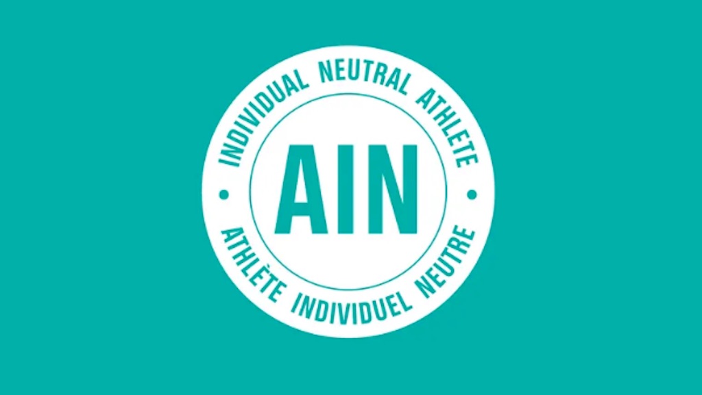 A bandeira designada aos russos e bielorrussos na competição é azul esverdeada contém um emblema branco sigla AIN (Atletas Neutros Individuais).