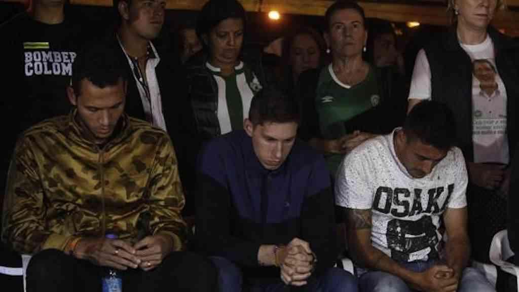 Os quatro sobreviventes tiveram um momento de intimidade na área em que a cauda do avião caiu, junto com familiares das vítimas, quando realizaram uma oração e fizeram reconhecimento do terreno, na cidade localizada a quase 40 quilômetros de Medellín.