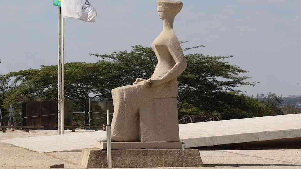 Estátua da justiça em frente ao Palácio do Supremo Tribunal Federal na Praça dos Três poderes em Brasília