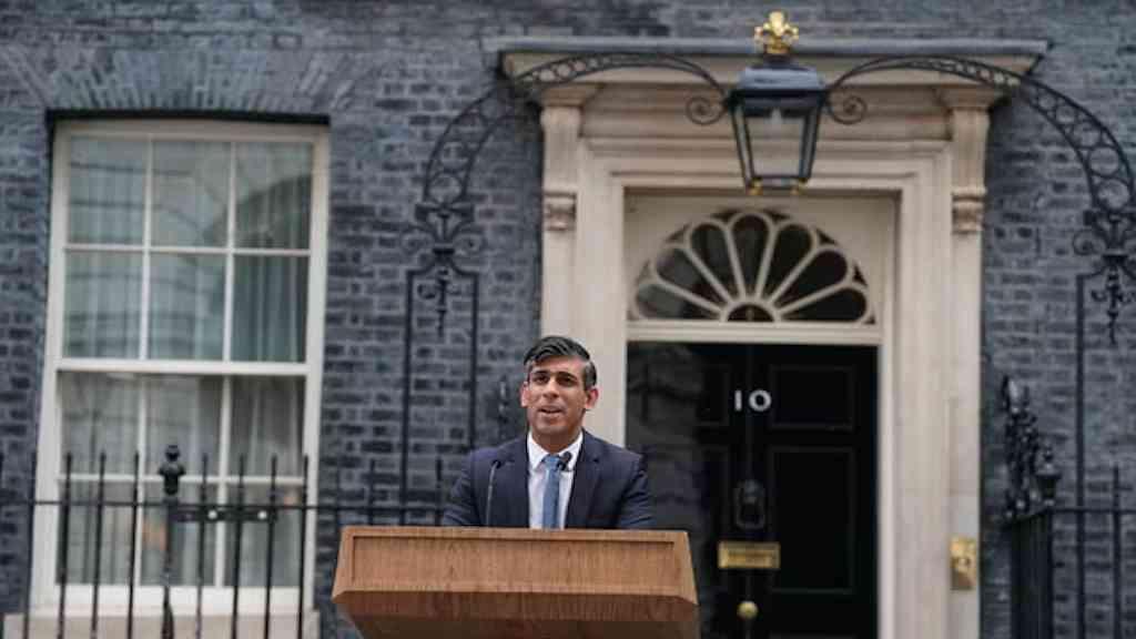 Sunak anunciou sua decisão sob uma chuva torrencial em Downing Street, tendo que falar por cima de manifestantes que tocavam a música Things Can Only Get Better – um hino associado à vitória esmagadora do Partido Trabalhista na eleição de 1997, sob o comando de Tony Blair, que encerrou o então longo período de governo conservador.