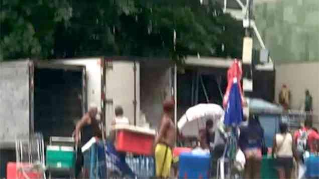 Assista, adiante, as cenas do saque, à luz do dia, sem nenhuma ação dos policiais: