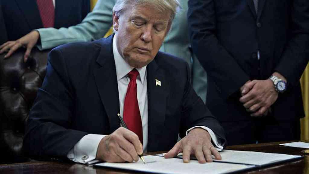 A primeira versão do controverso decreto anti-imigração, assinada poucos dias depois da tomada de posse de Trump. Estabelecia a proibição de entrada nos Estados Unidos a imigrantes de sete países de maioria muçulmana. Em 6 de março, Trump assinou a nova versão do decreto. Retirando o Iraque da lista e reduzindo-a a seis países.