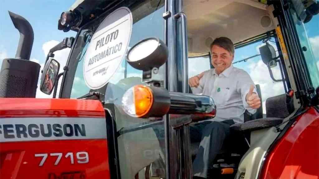 Bolsonaro posa para fotos em um dos tratores comprados com dinheiro irregular