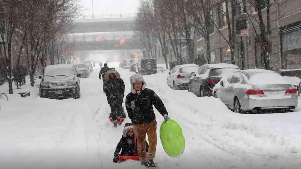 – Mas as crianças estão usando caiaques e câmaras de ar como trenós, aproveitando o dia de neve.