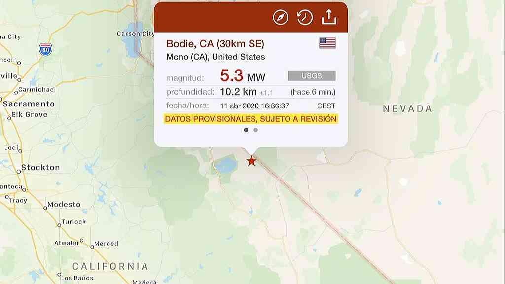 Um terremoto de magnitude 5,3 atingiu o centro do Estado da Califórnia neste sábado, conforme informou o Centro Sismológico Europeu do Mediterrâneo. O epicentro do terremoto ficou 446 km ao norte de Los Angeles e apresentou cerca de 10 km de profundidade abaixo da superfície da Terra.