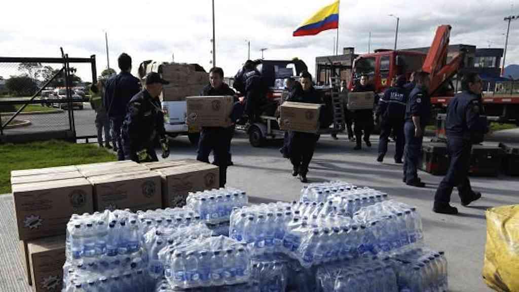 No Aeroporto Militar de Bogotá, o governo colombiano organiza suprimentos, equipamentos e equipes de resgate para eviar ao Equador. No sábado à noite um terremoto abalou o litoral norte equatoriano