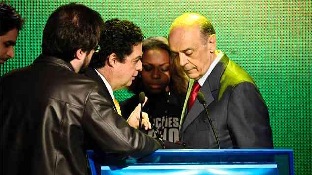 Gonzalez conversa com Serra no intervalo de um dos debates com os outros presidenciáveis, em 2010