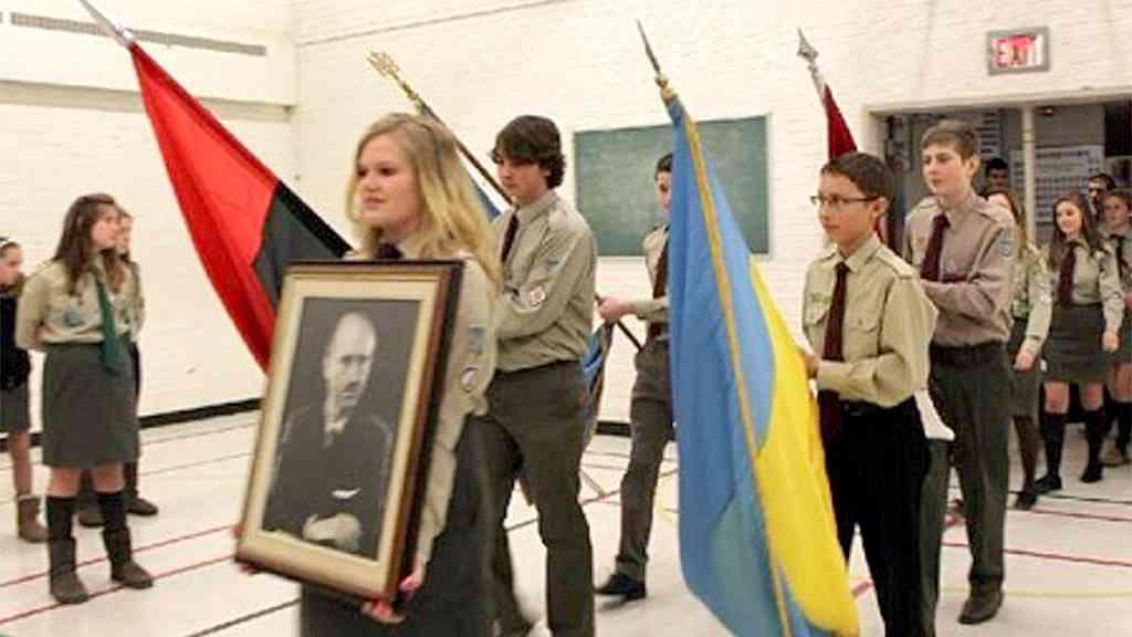 O escritor veterano do Exército norte-americano Noctis Draven revelou recentemente a imagem de alunos ucranianos carregando a imagem de Yaroslav Stetsko e a bandeira do partido nacionalista que integra a base de apoio político do presidente Volodymyr Zelensky.