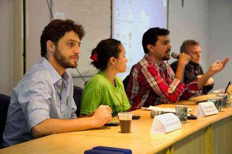Segundo o cientista político Theófilo Rodrigues (ao microfone), a comunidade acadêmica encontra-se em vigília contra a tentativa de golpe, em curso