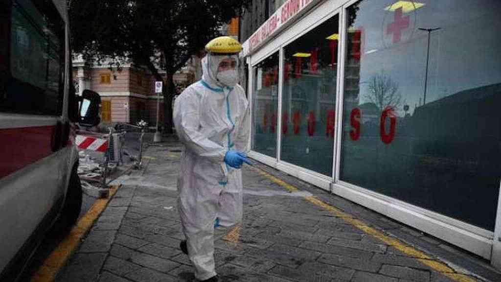 Trabalhador sanitário aguarda pacientes com covid em hospital de Gênova, na Itália