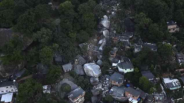 Uma pedra rolou da encosta do morro da Boa Vista, atingindo casas e ferindo quatro pessoas