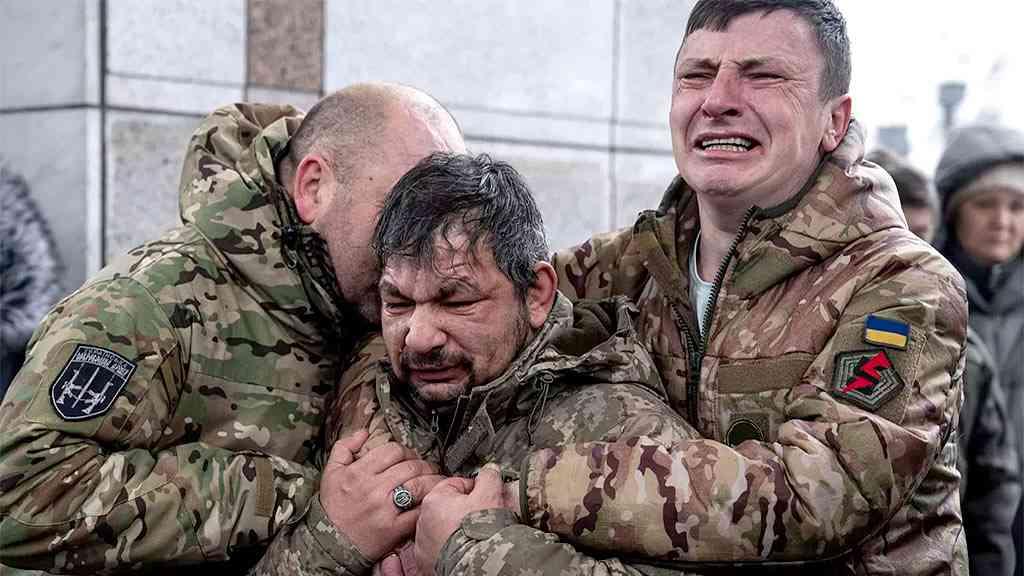 “Embora (a Ucrânia) ainda não esteja quebrada, porém (…) está certamente de joelhos”, destaca o jornal.