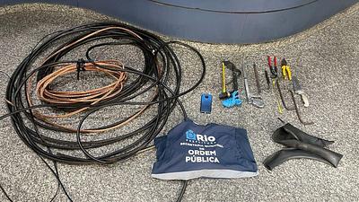 Além dos 200 kg de cobre apreendidos, também foram encontradas ferramentas como uma faca, serras, alicates e um telefone celular.