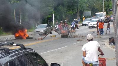 Manifestantes usam cadáveres para impedir o trânsito, em Angra dos Reis